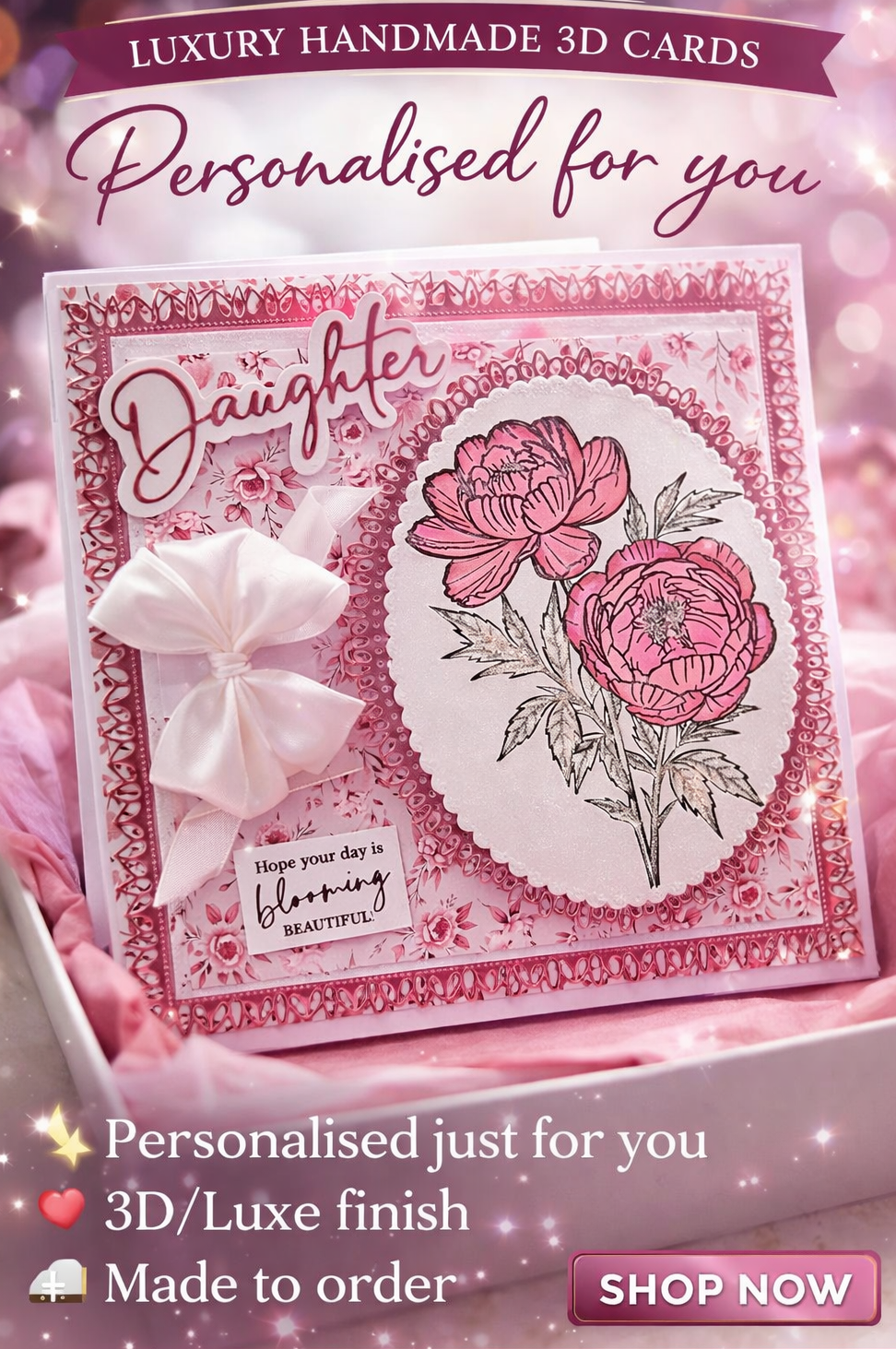 3D Luxury boxed 8x8 personalised Christmas Card Mum, sister, friend, etc